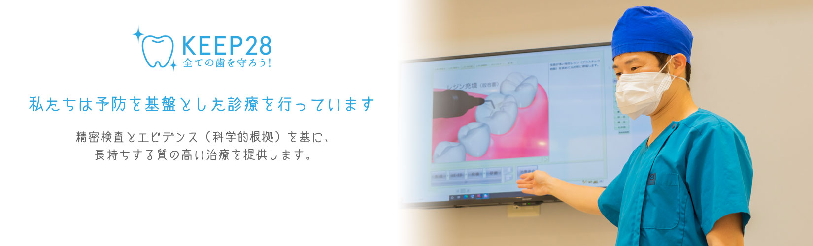 歯を失う原因の9割はむし歯と歯周病です。近年、お口の病気が全身の病気と密接に関係していることが様々な研究から明らかになってきています。私たちはお口の2大疾患であるむし歯と歯周病を予防することにより歯が失われる事を防ぎすべての歯を守ります。
